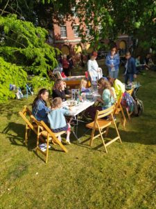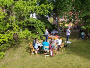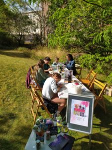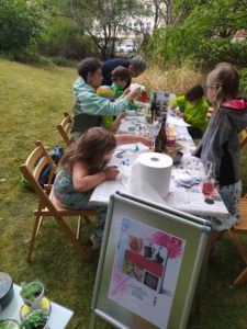 Das große Sommerfest im Haus des Buches in Leipzig hat wieder zahlreiche Verlage und Autoren in den zauberhaften Garten geholt. Mittendrin haben wir die Dotting Tools ausgepackt und kreativ losgelegt. Hölzerne Lesezeichen wurden bepunktet und gestaltet. Jung und alt hatten Spaß mit der besonderen Maltechnik.