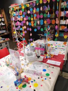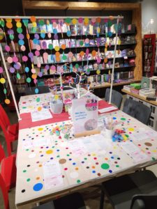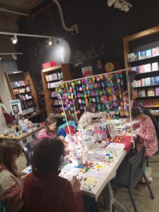 Die Winterferien bieten eine hervorragende Plattform, um kreativ zu werden. Im Rahmen des Ferienpasses Leipzig haben wir zusammen gepunktet und ein bisschen Farbe in den viel zu grauen Ferientag gebracht. Die Buchhandlung Hugendubel hat uns dafür eine ganz zauberhafte Plattform geboten und so konnten wir inmitten der Bücher unserer Kreativität freien Lauf lassen.