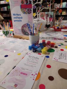 Mit ganz viel Spaß und noch mehr kreativen Ideen haben wir euch eingeladen, mitzumachen, auszuprobieren und die Freude am Punkten zu entdecken. Auf Steinen, Lesezeichen, süßen Blumentöpfen und Schlüsselanhängern habt ihr euch zwei Tage ausgetobt und wahnsinnig schöne Werke geschaffen. Unser Highlight: die jüngste Teilnehmerin war zwei Jahre alt, die älteste jenseits der 80! Wahnsinn! Es war uns ein Fest.